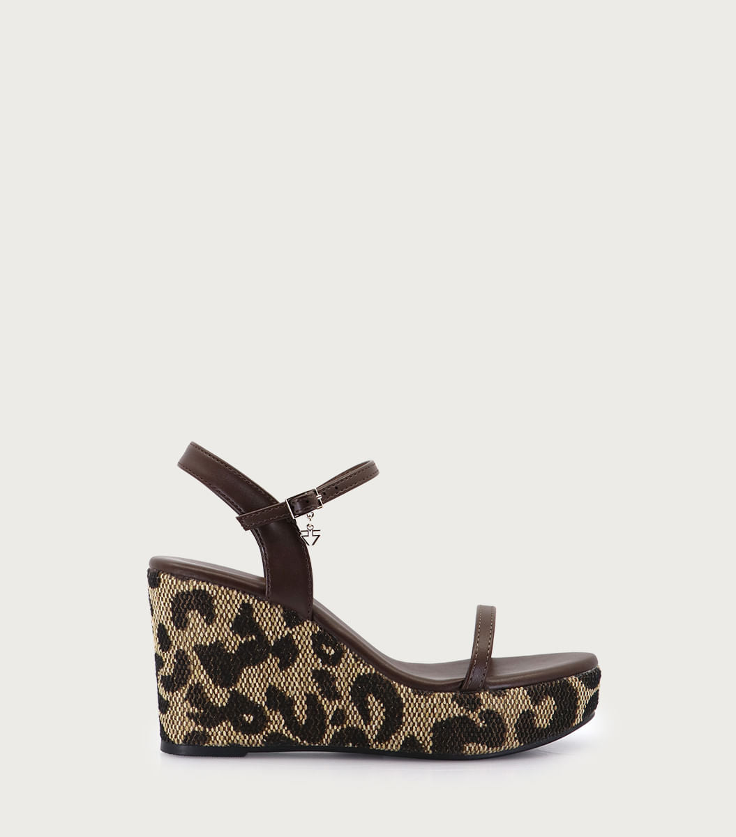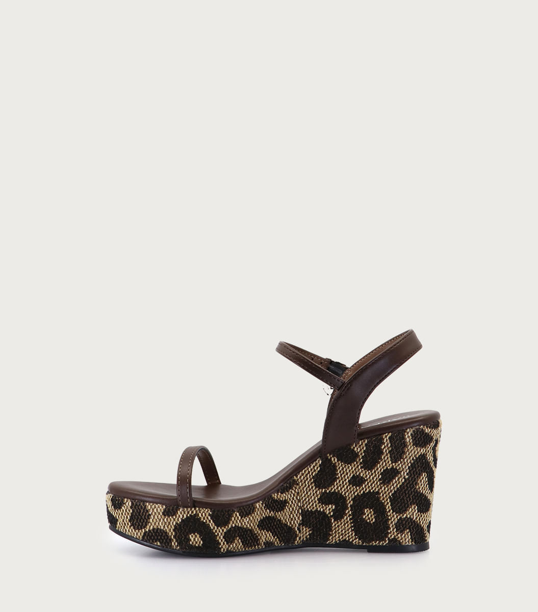 Plataforma Isba leopardo, en fibras animal friendly con hebilla metálica y logo. Forrada en rafia animal print con suela a tono. Altura de plataforma: 9 cm. Un diseño salvaje y lleno de estilo.