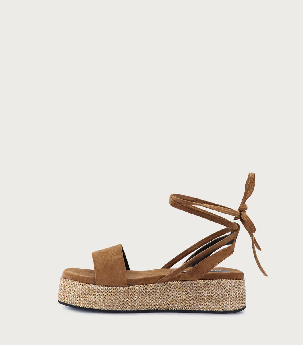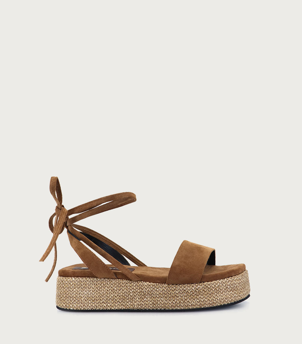 Plataforma Next marrón, de gamuzón con tira y pulsera gitana. Forrada en fibras animal friendly. Plataforma forrada en rafia. Altura de plataforma: 5 cm. Inspirada en las últimas tendencias, ideal para destacar en cualquier ocasión.