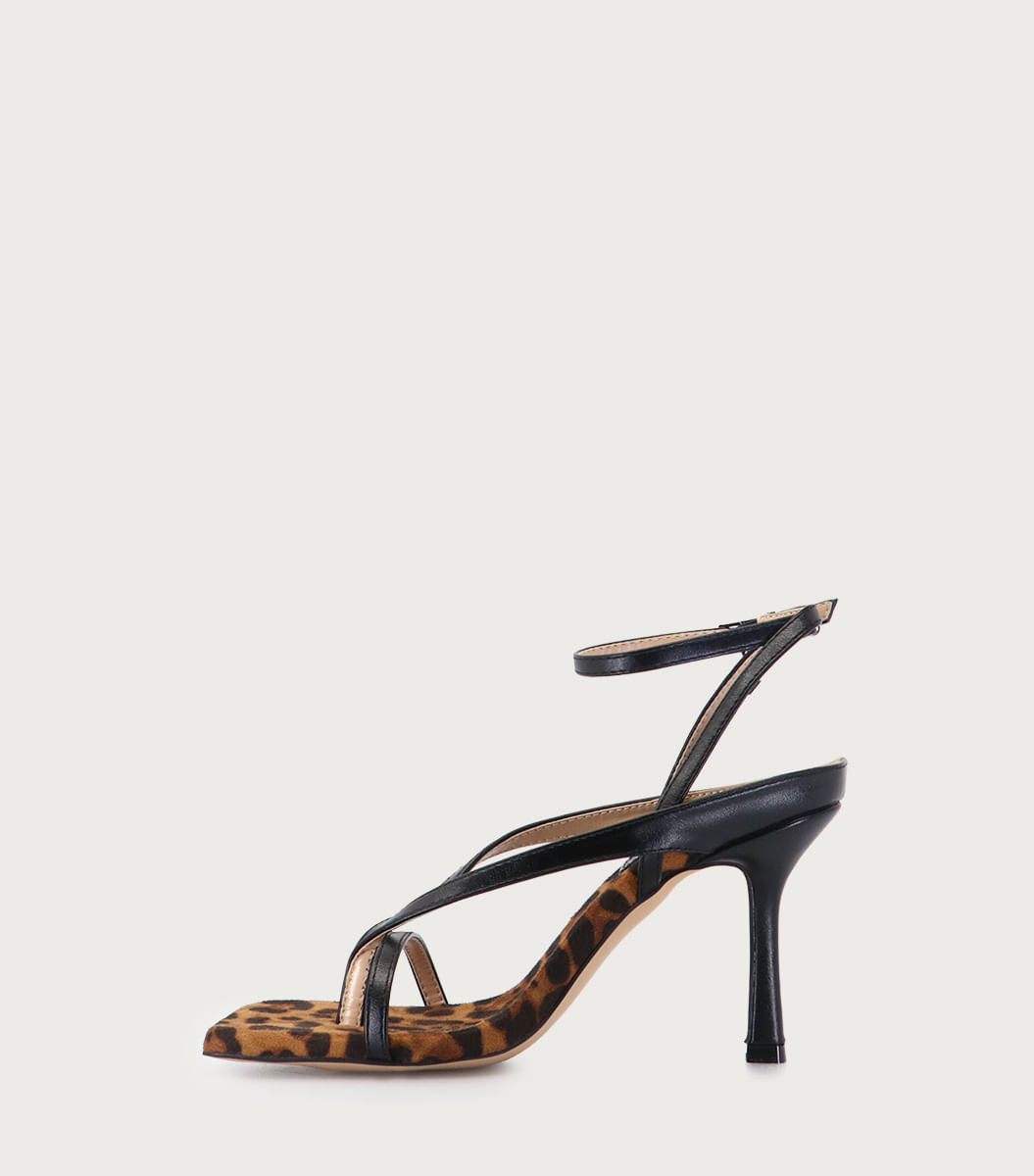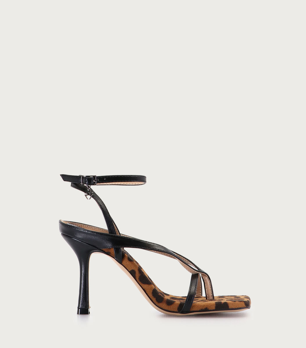 Sandalia Rumeri leopardo, confeccionada en fibras animal friendly, con detalle de hebilla con logo y forrera al tono. Taco y plantilla forrados en el mismo material de la capellada. Altura del taco: 8 cm. Diseñada para quienes buscan estilo, comodidad y compromiso con materiales sostenibles.